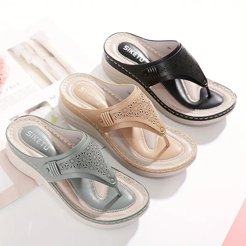 🎁HOT SALE - 50%OFF🔥Women's Wedge Heeled Flip Flops Comfortable Open Toe Arch Support Non Slip Slides Shoes